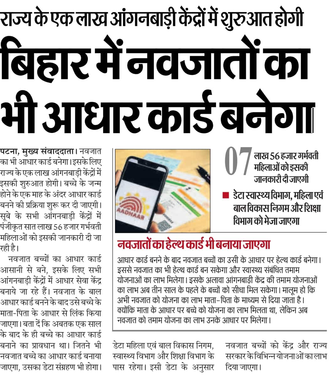 | Update Name | राज्य के नवजात बच्चो का बनेगा आधार कार्ड |