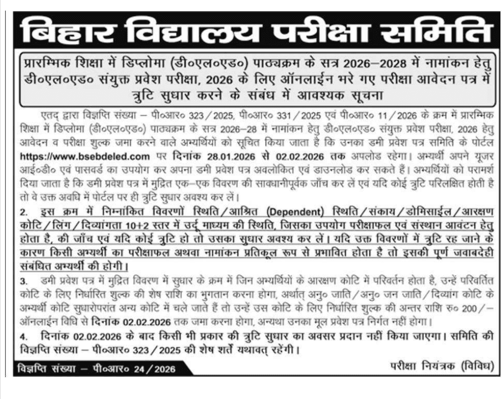 Bihar DELED Dummy Admit Card 2026 : ऐसे करे अपने डमी एडमिट कार्ड से सुधार