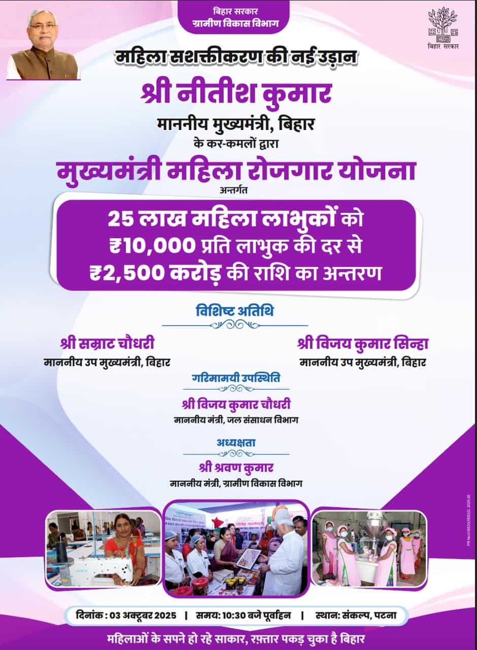 बिहार सरकार ने 2025 में महिला रोजगार योजना की दूसरी किस्त जारी कर दी है।