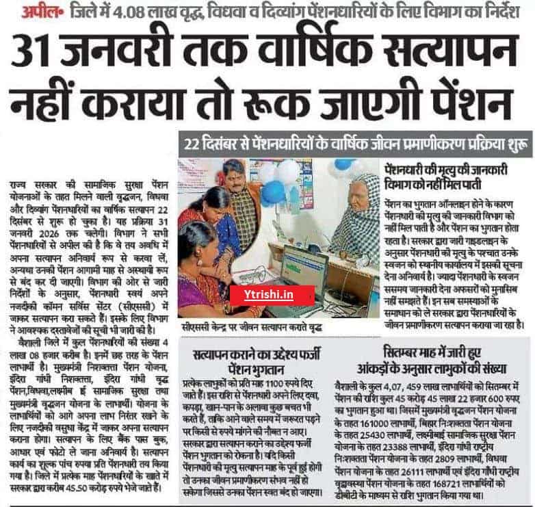 Post Name  Bihar Pension ekyc Update : बिहार में पेंशन लाभार्थियों का ekyc हुआ शुरू, अंतिम तिथि जारी