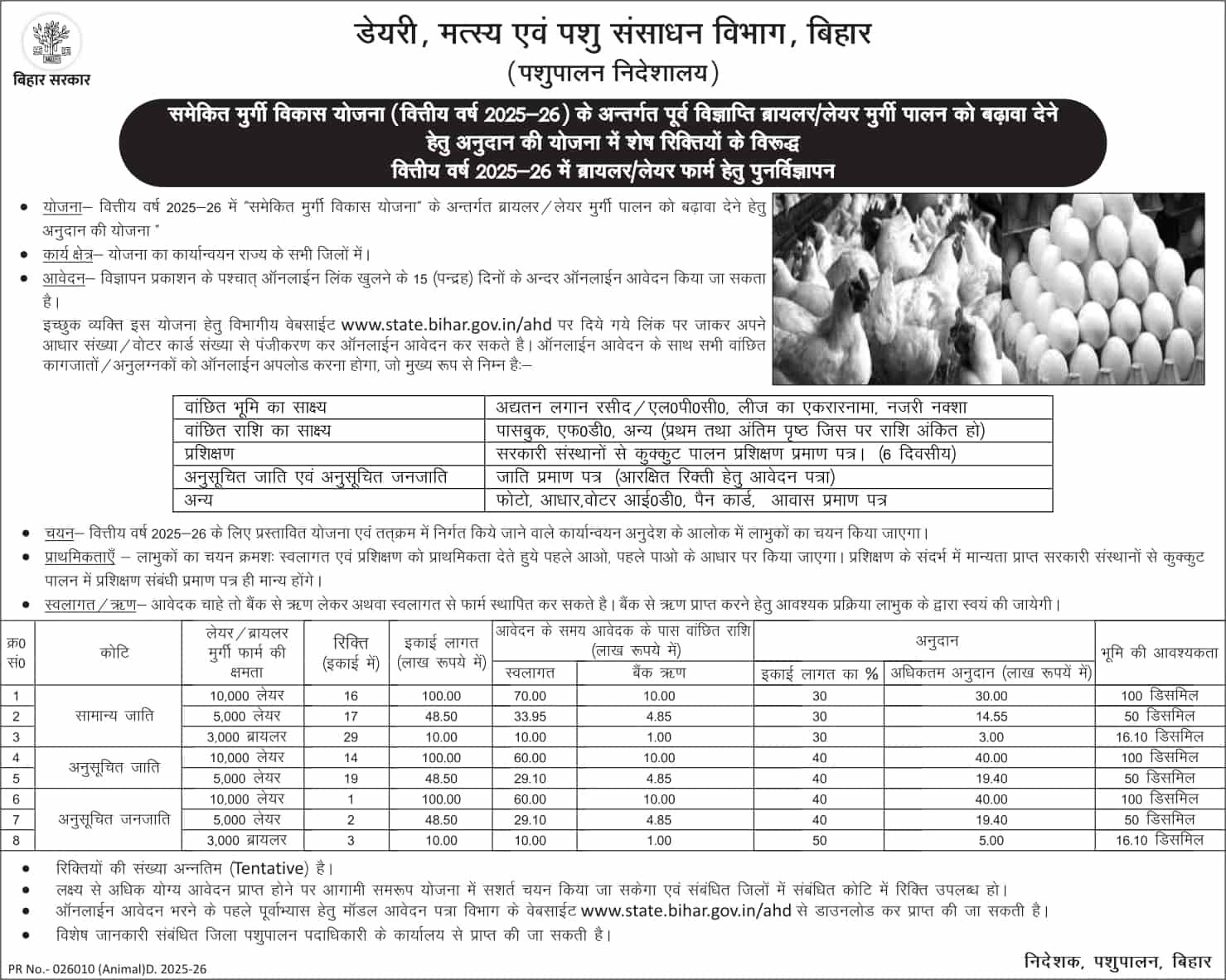 Bihar Poultry Farm Yojana 2026 : स्वलागत/ ऋण
