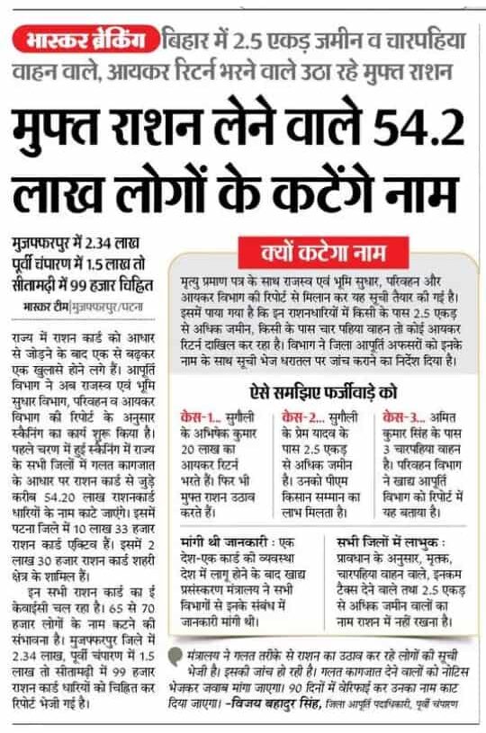 | Post Name | Bihar Ration Card News 2025 : बिहार राशन कार्ड में 54.2 लाख लोगों का कटेगा नाम, लिस्ट हुआ जारी |