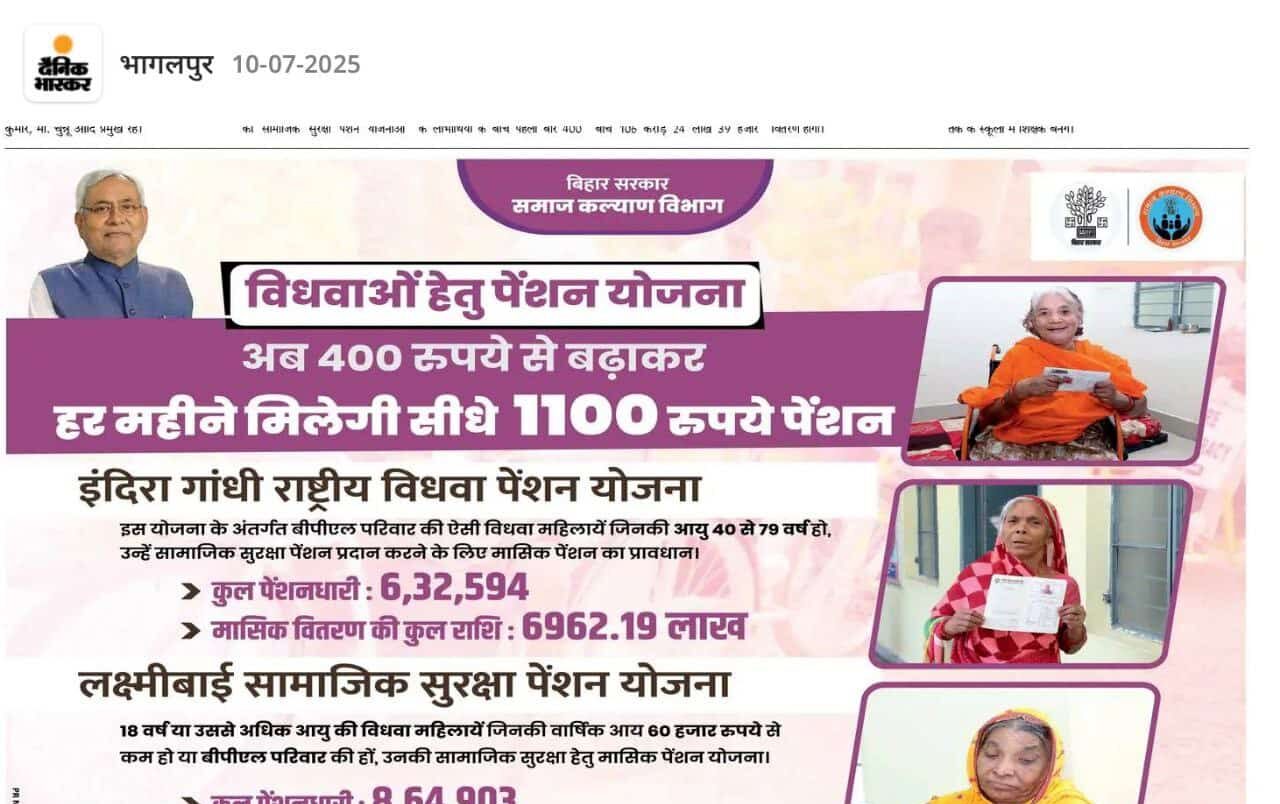 Bihar vidhwa pension yojana 2025 amount : कब तक आएगा पेंशन योजना का पैसा