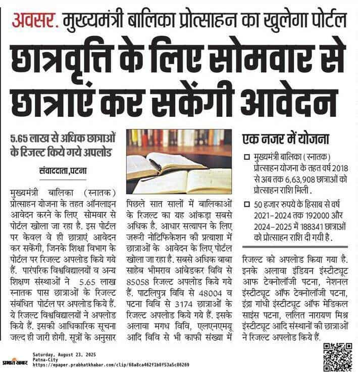यह बिहार सरकार की योजना है जिसके तहत स्नातक पास बालिकाओं को ₹50,000 की प्रोत्साहन राशि दी जाती है।