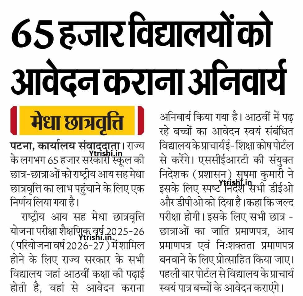 | Post Name | NMMS Scholarship 2026 New Rule : अब 8वीं के सभी विद्यार्थियों को आवेदन करना अनिवार्य मिलेगा ₹12,000 रूपये – जल्दी करे आवेदन |