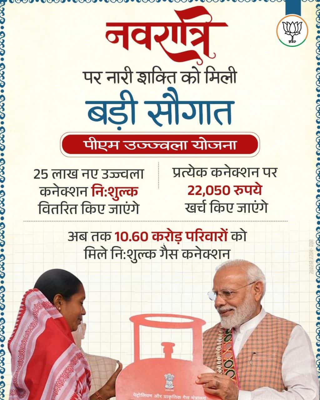 | Benefit | 25 लाख नए गैस कनेक्शन बिल्कुल मुफ्त |