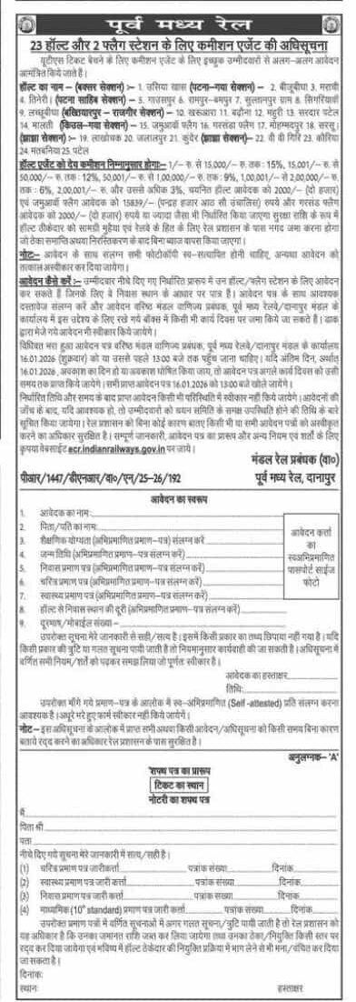 - आवेदन की अंतिम तिथि (दानापुर मंडल) :- 16.01.0226