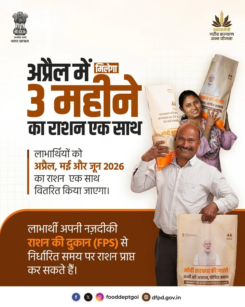 इस नए नियम के अनुसार लाभार्थियों को अप्रैल, मई और जून 2026 का राशन एक साथ दिया जाएगा।